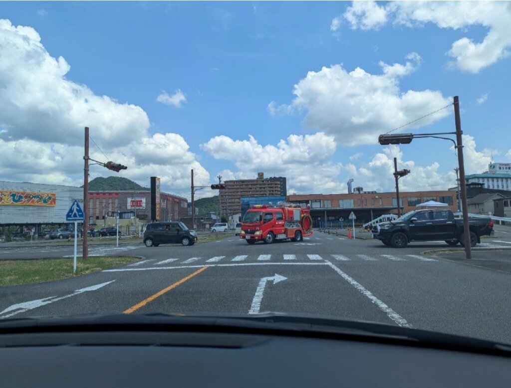 【山口市消防団緊急自動車運転研修】先日、湯田自動車学校にて行われた「緊急自動車運転講習」に参加してきました。消防車を運転する機関員が各分団から1 名ずつ集められ、緊急走行に関する法令と危険予知についての座学、緊急走行時の留意点および車両誘導についての実技講習が教習コースで行われました。(営業K・F)