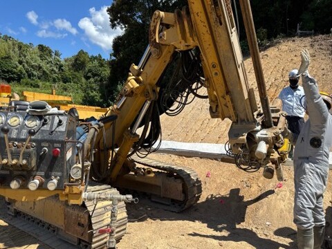 【木与防災宇田地区第8改良・逆巻施工斜面に鉄筋を挿入することで、斜面の安定性を高め、地山の崩壊を防ぐことが出来ます。法面工事において極めて重要な役割を果たします。今回は、「逆巻施工」を採用しています。引き続き、協力会社としっかりと打合せをおこないながら取り組んでまいります。(土木H・K)