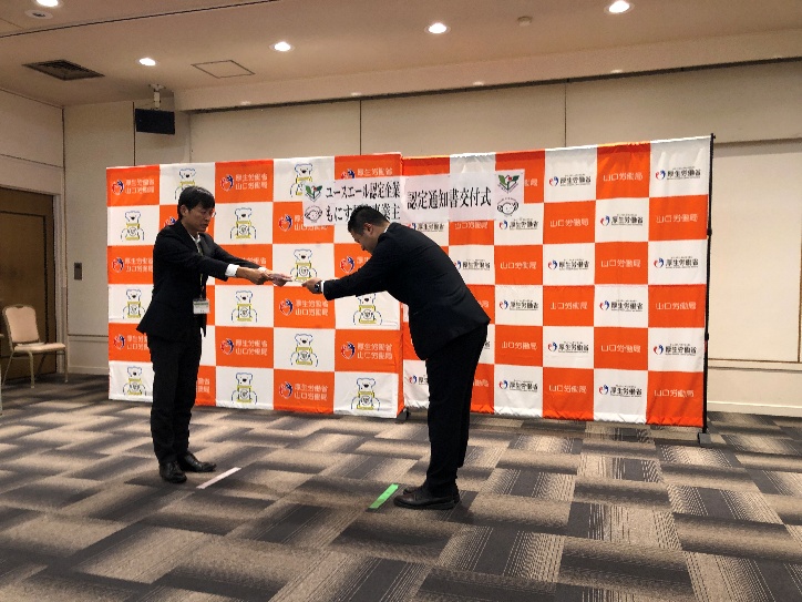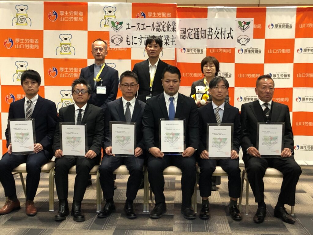 「ユースエール認定企業」認定通知書交付式に出席しました。ユースエール認定の取得にあたっては、まず、現状の労働環境を数値で見える化し、離職率・残業時間・有給休暇取得率などを集計して課題を洗い出しました。そのうえで、勤怠管理システムの導入や不要な業務の見直しを行い、残業時間の削減に取り組みました。ユースエール認定は、単なる“取得”が目的ではなく、社内文化の醸成が重要だと考えます。認定を通じて、若者にとって魅力的な職場であることを客観的に示すことができるため、より多くの若手人材と出会えることを楽しみにしています。今後も社員の定着率向上や働きがいのある職場づくりを進め、社員一人ひとりが誇りを持って働ける会社にしていきましょう。(経営・営業本部 M・K)