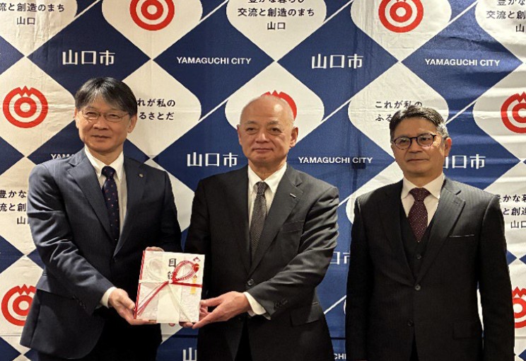 【80 周年記念事業(山口市へ寄付金贈呈)】ことし迎える技工団創業80周年の記念事業として、技工団労働災害防止協力会と合同で、山口市へ寄付金を贈呈いたしました。贈呈式は2月12日に山口市役所にて執り行われました。前回の75周年の際と同様、市長応接室に立ち入る機会をいただき、事務局担当として大変貴重な体験となりました。(営業K・F)