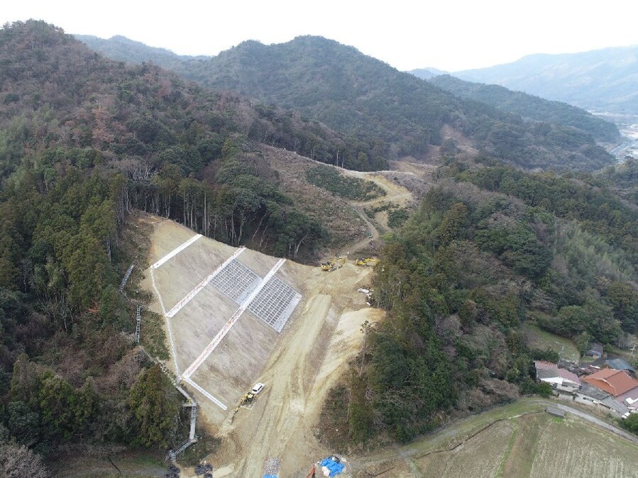【工事完成:稲見地区第4 改良工事】本工事が無事完了しました。掘削土を現地で改良し、路体部の盛土を施工しました。施工過程において路体の盛土量が変更となる場面もありましたが、工事用道路を作業しやすい位置に計画・設置したことで、地盤改良から路体盛土までの作業を効率的に進め、工期内に完了することができました。(土木T・W)
