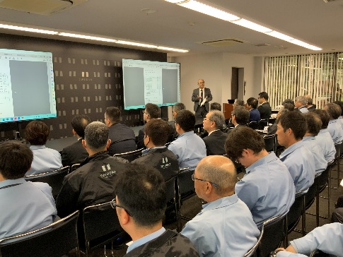 2026年度のキックオフミーティングが開催されました。社長からは、2026年度基本計画のキックオフにあたってのメッセージが示されました。生産本部長からは、目標を「良い仕事」やチームづくりの道具として活用すること、ならびに健康管理の重要性について説明がありました。経営・営業本部長からはウェルビーイングや賃金ベアについて、そして各部長からは年度目標について説明がありました。各自がそれぞれのミッションを理解し、一人ひとりがさらに強くなっていきます。目指すところは〝みんながhappy!〟。また、あらためて新入社員2名を紹介し、みんなで歓迎しました。